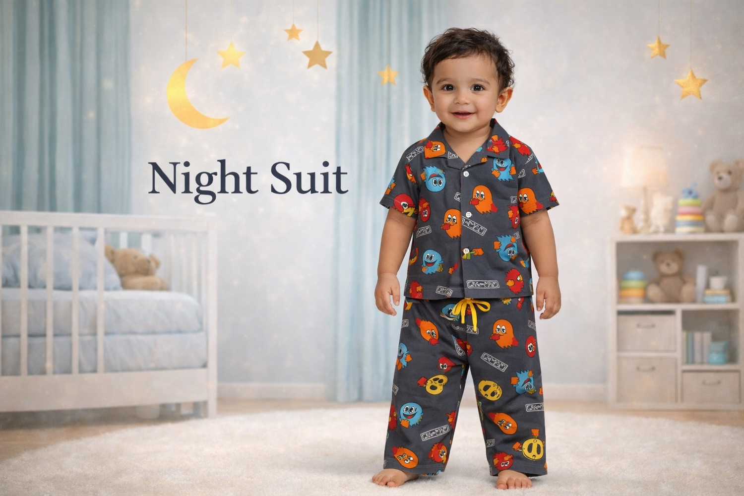 Half Sleeve Kids Night Suit - Black Bird