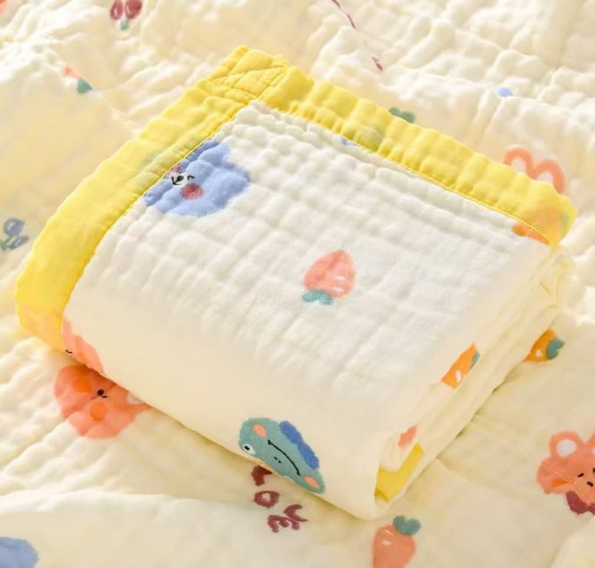Muslin Receiving Blanket - Yellow Border with Rabbit and Carrot 110*110 cm