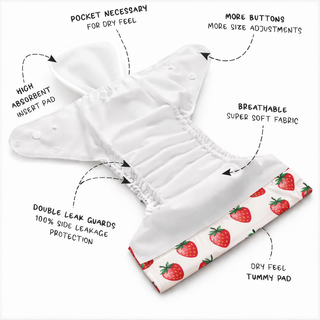 Keep your baby dry, comfortable, and happy with our premium reusable cloth diaper, thoughtfully designed for everyday use. Made from ultra-soft, breathable fabric, this diaper is gentle on delicate baby skin while providing excellent absorbency.