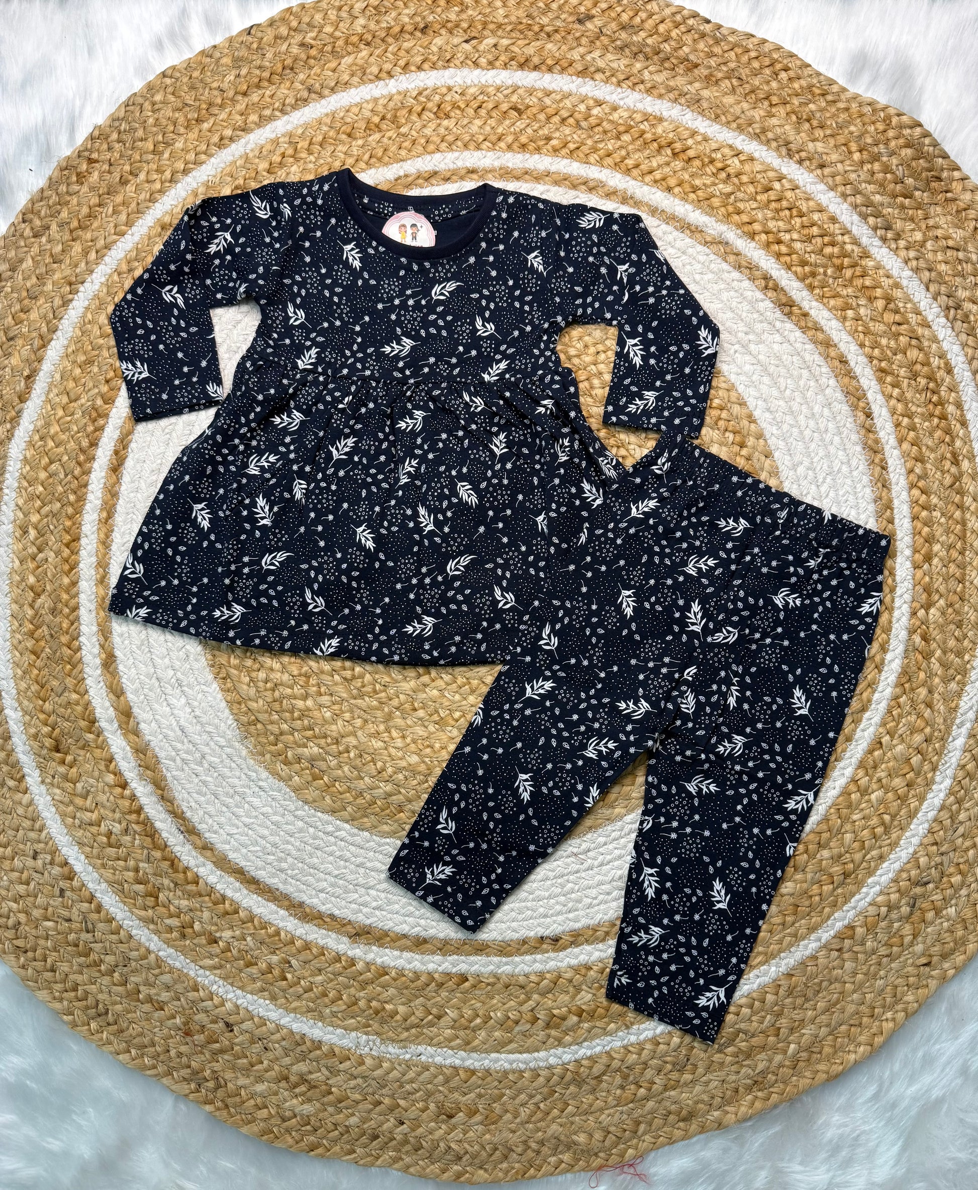 Frock with Legging Co-ord Set Infant - Black Leaf