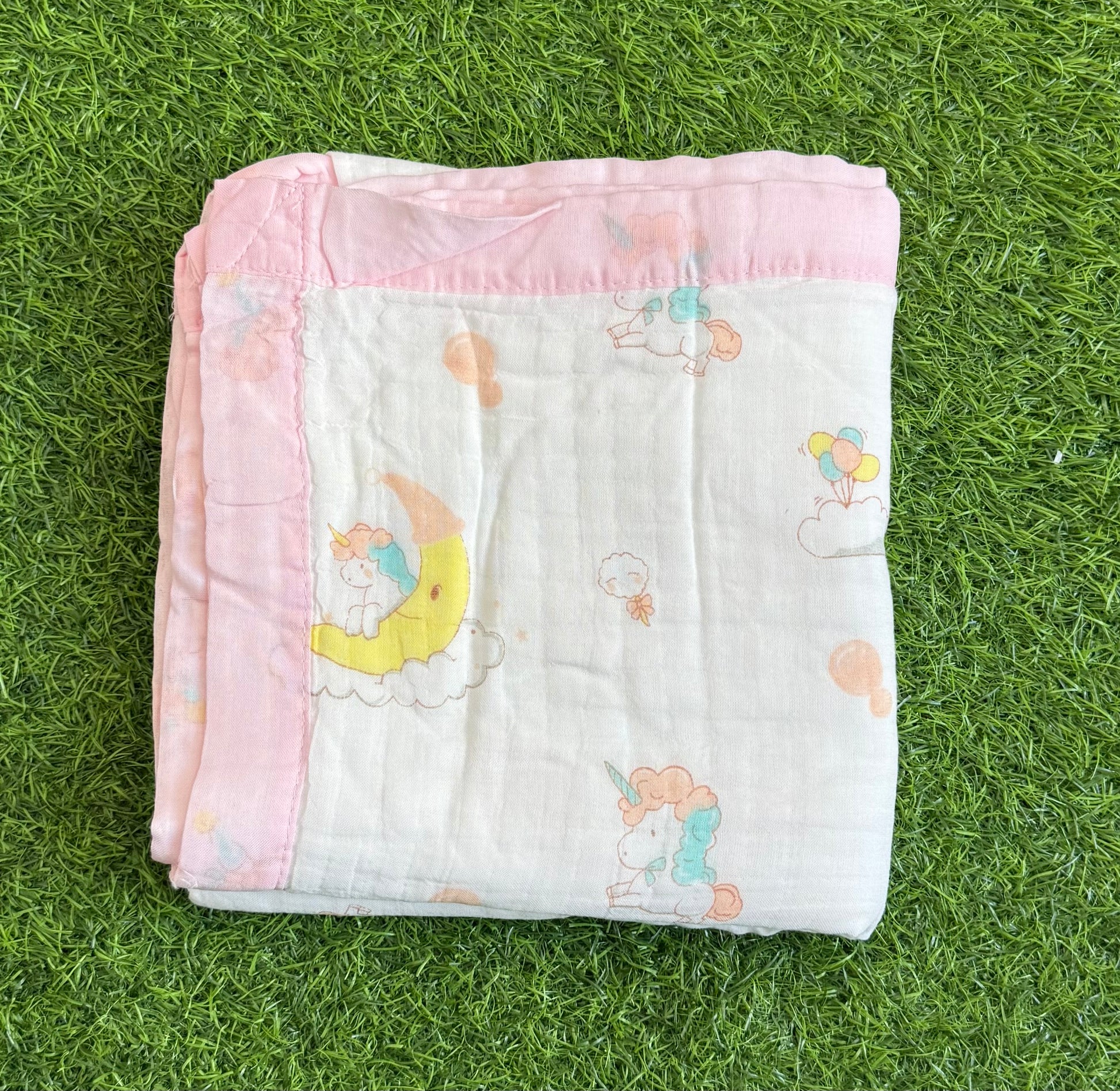 Muslin Receiving Blanket - Pink Border with Unicorn 100*100 cm